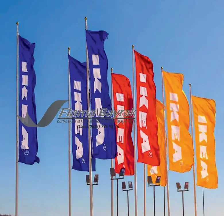 Özellikle şirket merkezleri, fuarlar, organizasyon alanları, bayi noktaları ve saha çalışmalarında kullanılan logolu bayraklar düşük maliyetle yüksek dikkat çekme gücü sunar.