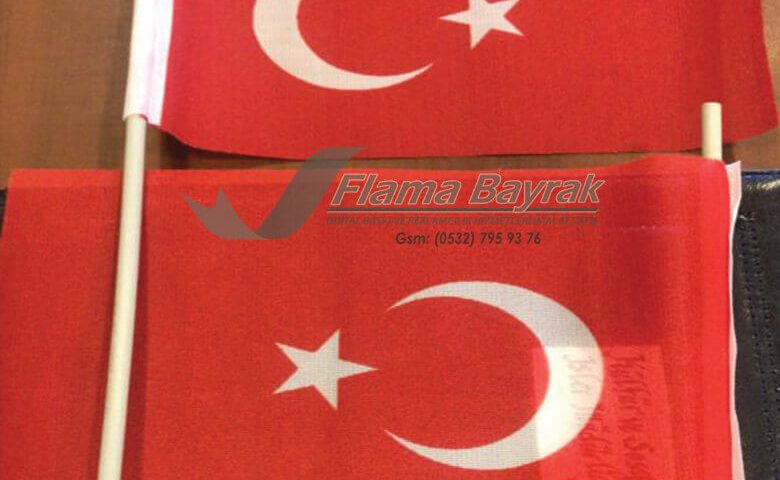 Masa üstü kullanımda küçük ölçü direkli yada direksiz saten bayrak tercih edilir.