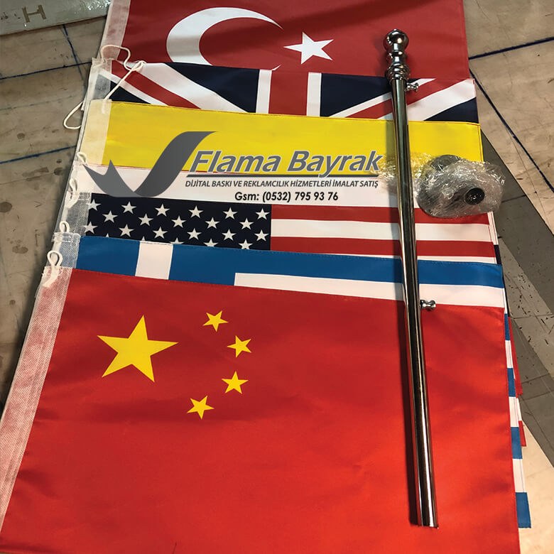 Talepler doğrultusunda farklı ebatlarda da üretimi yapılmaktadır. Saten kumaşlar üstüne özel baskı ve dijital baskı teknikleri gerçekleştirilir. Organizasyon ve tanıtımların vazgeçilmez motive aracı olarak bulunan bayraklar firmaların tanıtımları için kullanılan en önemli detaylar arasındadır. Uzun senelerin verdiği bir deneyime sahip olan şirketimiz işinde profesyonel ekibimiz kaliteli hizmetinden ödün vermemektedir.