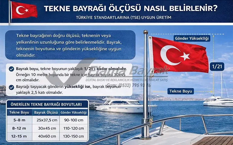Bayrak ölçüsü, teknenin boyutuna göre belirlenmelidir.