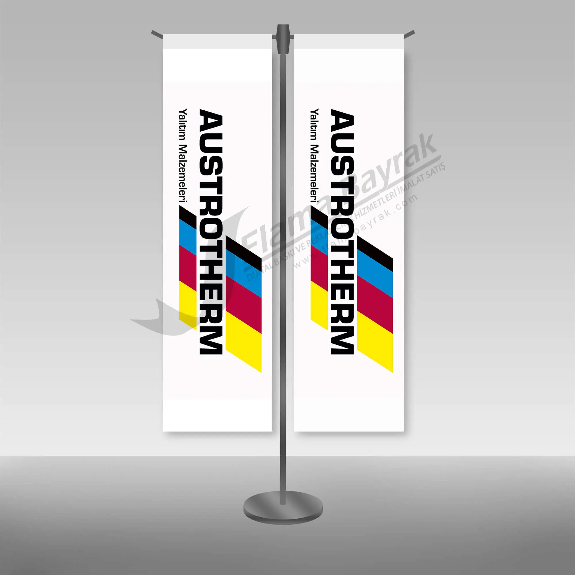 Müşterilerin Logolu gibi masa Flaması taleplerinde dijital baskı yöntemi ile üretilmektedir.
