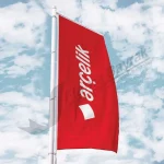 Bu bayrak modeli; marka logosu, kurumsal renkler ve kampanya mesajlarının dış mekânda güçlü şekilde temsil edilmesini sağlar.