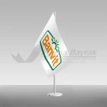 Masa Bayrağı, çalışma alanlarında resmi kimliği yansıtmak amacıyla kullanılan sade ve şık bir masa üstü bayrak modelidir.