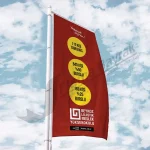 Bu bayrak modeli; marka logosu, kurumsal renkler ve kampanya mesajlarının dış mekânda güçlü şekilde temsil edilmesini sağlar.